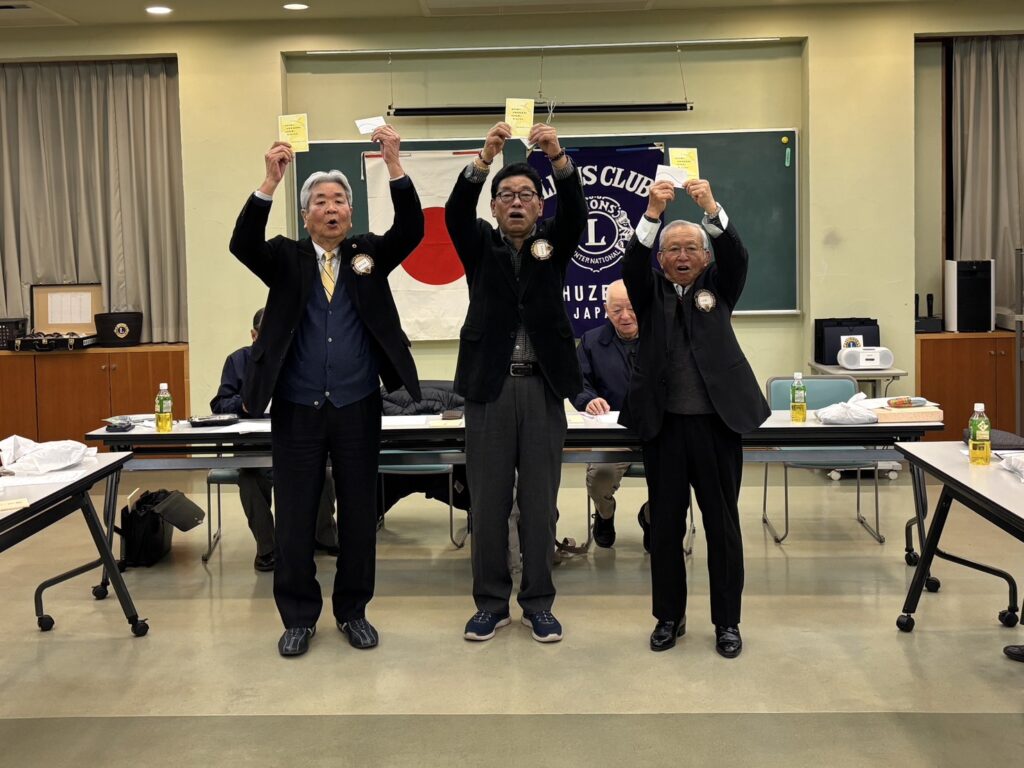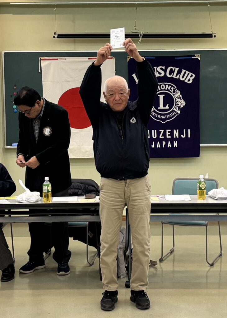 2月4日午後6時15分よりコミュニティー会館で9名のメンバーが参加して開催されました。前回も今回も弁当が一つ余ったので、きっと誰かが緊急事態か失念で欠席されたんでしょう・・。高齢メンバーが多いので心配ですね。今日は酒井幹事の結婚祝い、飯田会長、上田ライオン、藤井ライオンの誕生祝いが行われま、第二例会で予定されていた、大川ライオンと藤井ライオンのサックス、フルートの演奏が、サックスの退院遅れにより、延期されることが発表されました。
